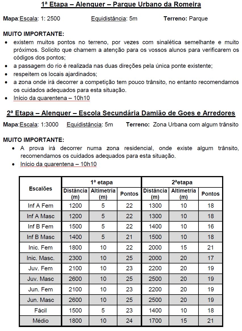 Ambas as etapas decorreram nos terrenos do Pinhal do Rei (mapa Castelo de Ourém).