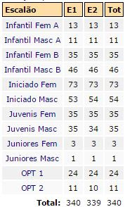 Por escalões/percursos