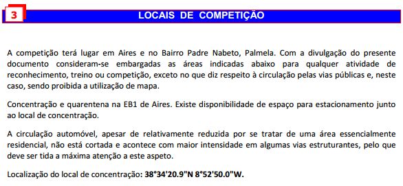 PARTIDAS – Todos os escalões partirão com a estação START, pelo que se chama a atenção para a necessidade deste procedimento.
